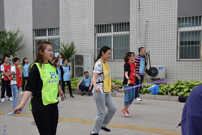此次比賽分別是拔河比賽、踢毽子、跳繩、五毛一塊、面面相聚、搭橋過(guò)河、勤勞的小蜜蜂等項(xiàng)目?;顒?dòng)最先開始的熱身比賽拔河,在比賽中,每隊(duì)隊(duì)員使出了渾身解數(shù),全力以赴也要分個(gè)高下。哪怕拼命向后的身體被對(duì)手逐漸拽向前方,哪怕宣告失敗的哨聲有些尖銳,哪怕失落的情緒讓人惆悵,但新的比賽開始,場(chǎng)上場(chǎng)下又都瞬間充滿了斗志,“加油,加油!”的呼聲震耳欲聾。