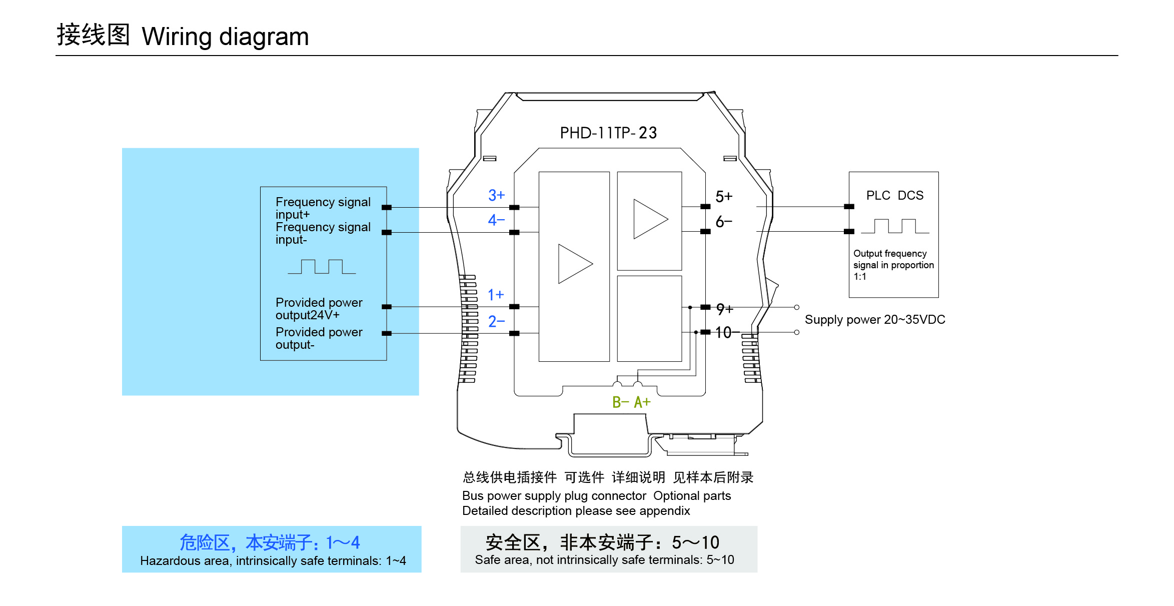 頻率信號輸入隔離式安全柵,可實現(xiàn)將危險區(qū)儀表的頻率信號1:1傳輸?shù)桨踩珔^(qū),并給危險區(qū)的現(xiàn)場儀表提供隔離配電電源(12V或24V)。