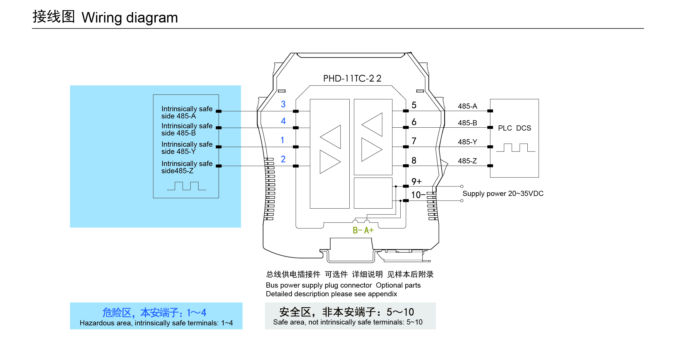 PHD-11TC-22通訊信號(hào)輸入隔離式安全柵,可實(shí)現(xiàn)RS-485全雙工數(shù)字信號(hào)在危險(xiǎn)區(qū)和安全區(qū)的雙向通信。