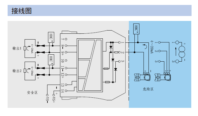 或電流源4~20mA信號,隔離傳送到安全區(qū)兩路輸出,并支持HART信號雙向通訊。變送器
