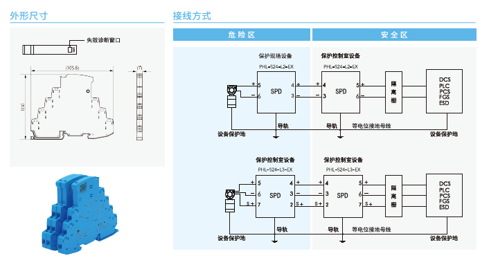 PHL-S系列SPD主要用于保護以二線制、三線制方式連接的變送器、開關(guān)、頻率信號、通信設(shè)備、熱電阻、熱電偶等現(xiàn)場設(shè)備以及控制室I/O、DCS、PLC等設(shè)備,使其免受雷擊電涌沖擊電壓或操作過電壓的損害。主要特點有: