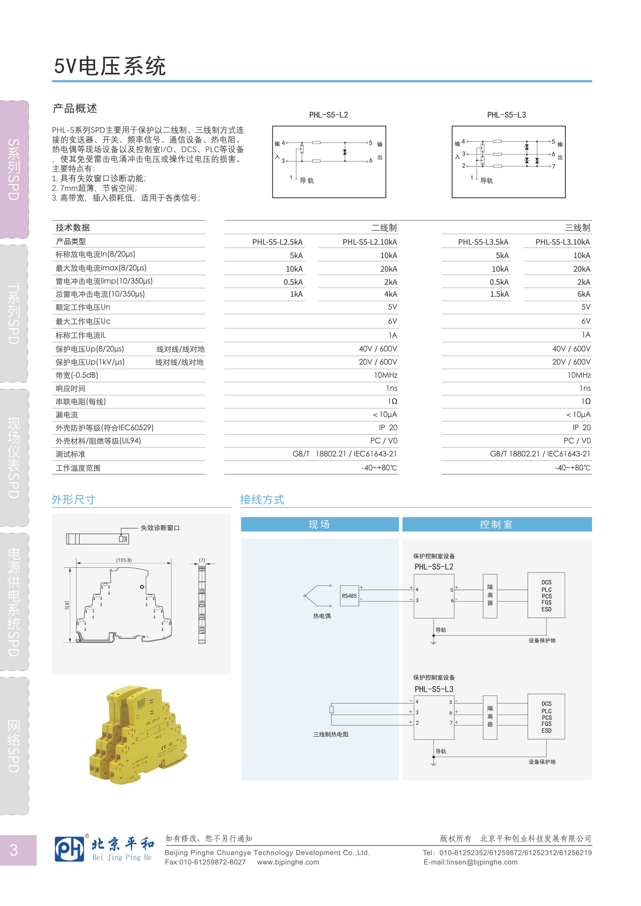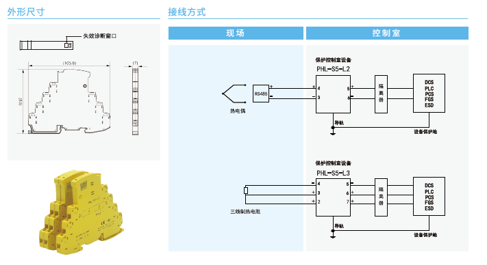PHL-S系列SPD主要用于保護(hù)以二線制、三線制方式連接的變送茶、開關(guān),題率信號(hào)、通信設(shè)備、熱電阻、熱電偶等現(xiàn)場設(shè)備以及控制室IO.DCs、PLC等設(shè)備使其免受雷擊電涌沖擊電壓或操作過電壓的損害。主要特點(diǎn)有: