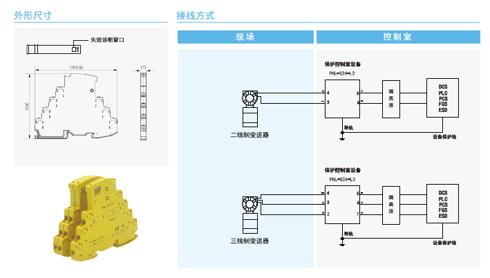 PHL-S系列SPD主要用于保護以二線制、三線制方式連接的變送茶、開關,題率信號、通信設備、熱電阻、熱電偶等現(xiàn)場設備以及控制室IO.DCs、PLC等設備使其免受雷擊電涌沖擊電壓或操作過電壓的損害。主要特點有: