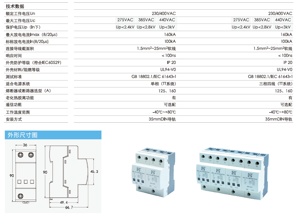 | 測試標準 | GB 18802.1/IEC61643-1 |