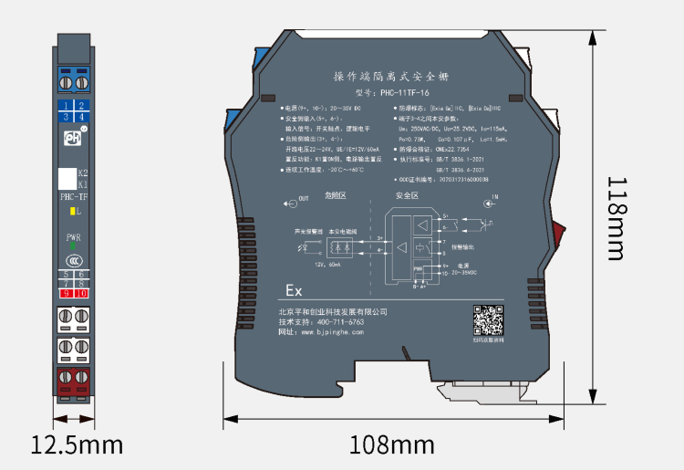 | 外形尺寸 | 厚12.5mm×寬108mm×高118mm |