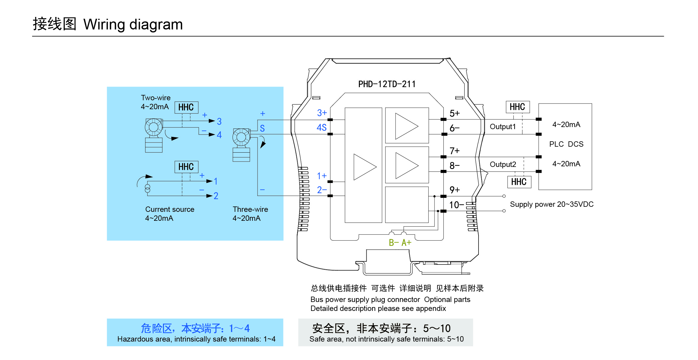 二、三線制變送器或電流源(HART)輸入