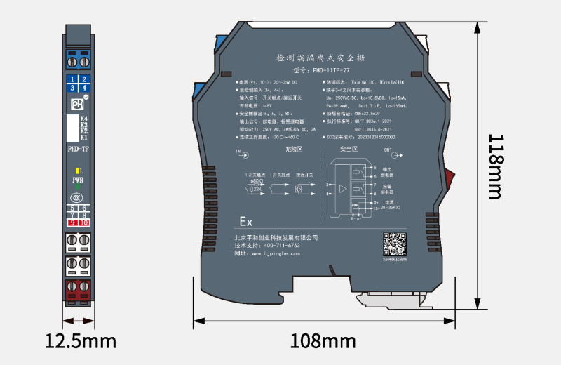 | 外形尺寸 | 厚12.5mm×寬108mm×高118mm |