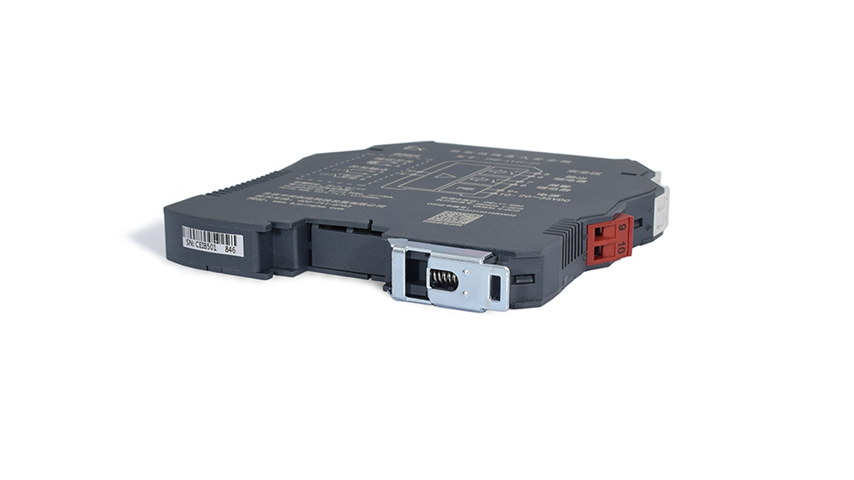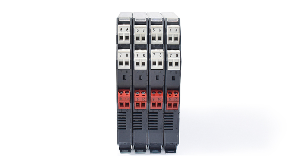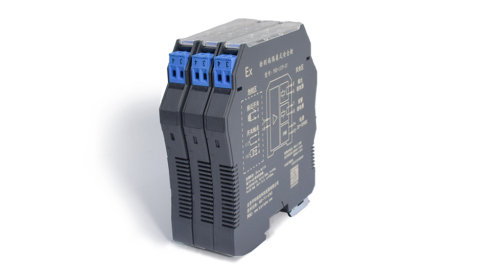 開關(guān)量輸入繼電器輸出隔離式安全柵,將來自危險區(qū)的開關(guān)觸點或接近開關(guān)的輸入信號,通過安全柵隔離傳輸?shù)桨踩珔^(qū)繼電器輸出。線路故障檢測通過單獨的繼電器輸出,并在模塊頂部LED燈顯示。模塊的撥碼開關(guān)用來設置輸入和輸出同相或反相控制,以及設置開啟或關(guān)閉線路故障檢測報警指示功能。