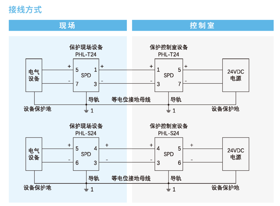 PHL-S24小功率電源SPD主要用于保護(hù)現(xiàn)場設(shè)備以及控制室24V供電設(shè)備,使其免受雷擊電涌沖擊電壓或操作過電壓的損害。