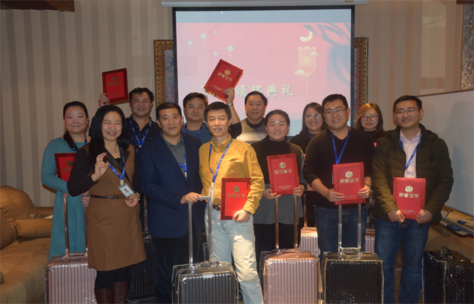 首先,公司董事長致開幕賀詞。董事長對2017年實現(xiàn)產(chǎn)銷量的飛躍式增長表示肯定的同時,鼓勵大家戒驕戒躁,爭取更大的成績并宣布2018年是“服務(wù)提升年”。隨后,公司領(lǐng)導(dǎo)為獲獎員工和集體頒獎。