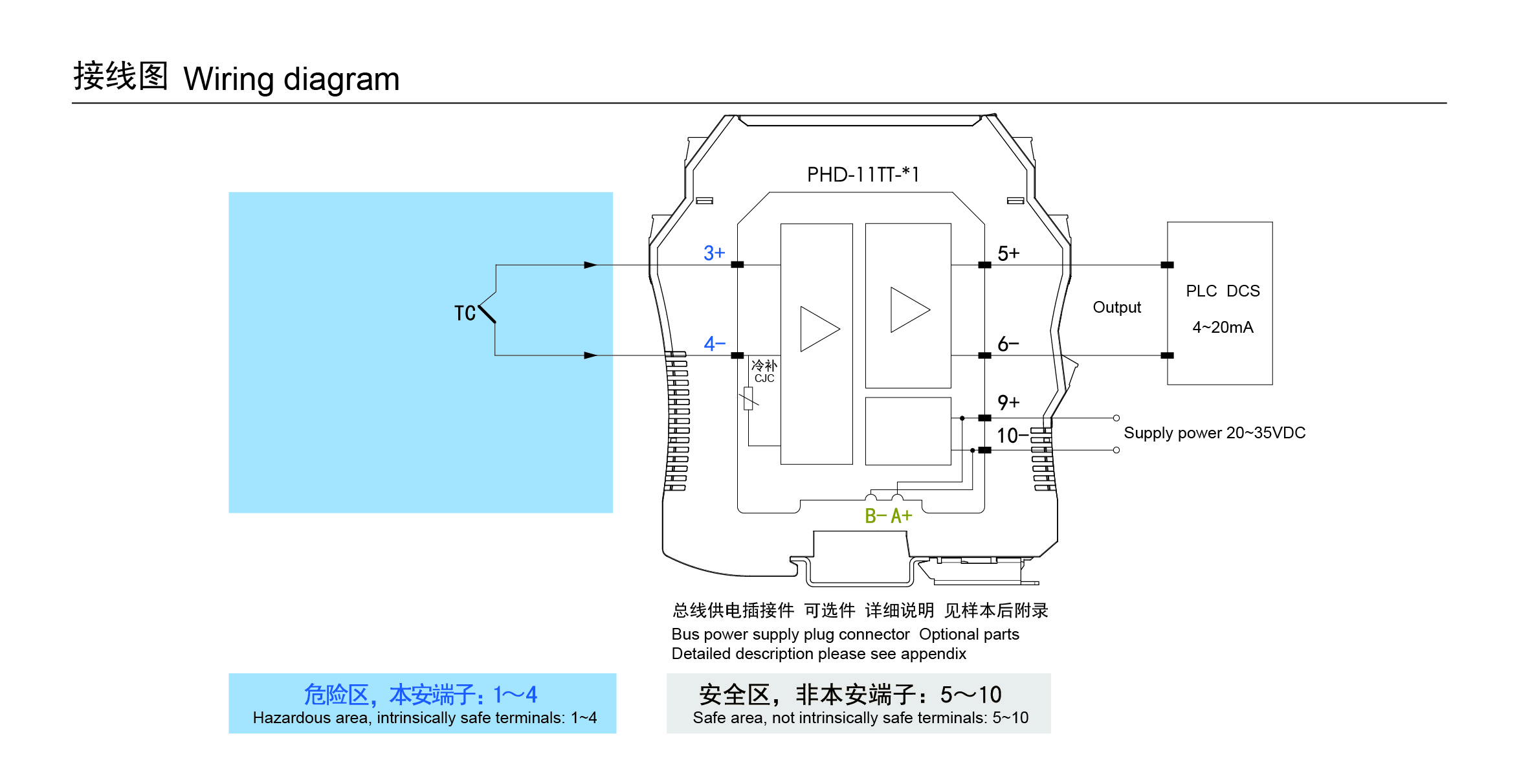| 供電電壓 | 20-35VDC,功耗<1.2W (24VDC供電,20mA輸出時) |