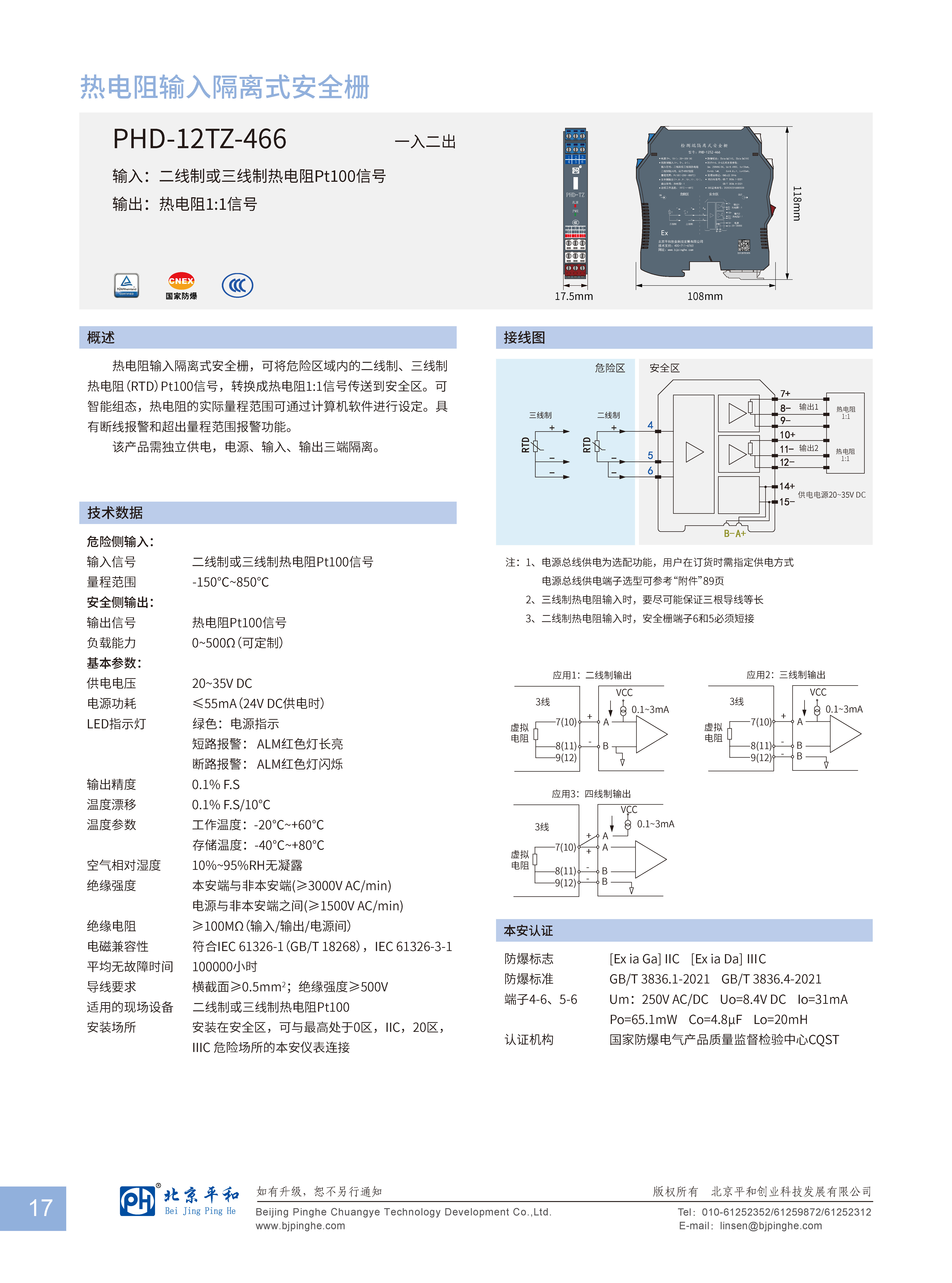 熱電阻輸入隔離式安全柵,可將危險區(qū)域內(nèi)的二線制、三線制熱電阻(RTD)Pt100信號,轉(zhuǎn)換成熱電阻1:1信號傳送到安全區(qū)??芍悄芙M態(tài),熱電阻的實際量程范圍可通過計算機軟件進行設(shè)定。具有斷線報警和超出量程范圍報警功能。