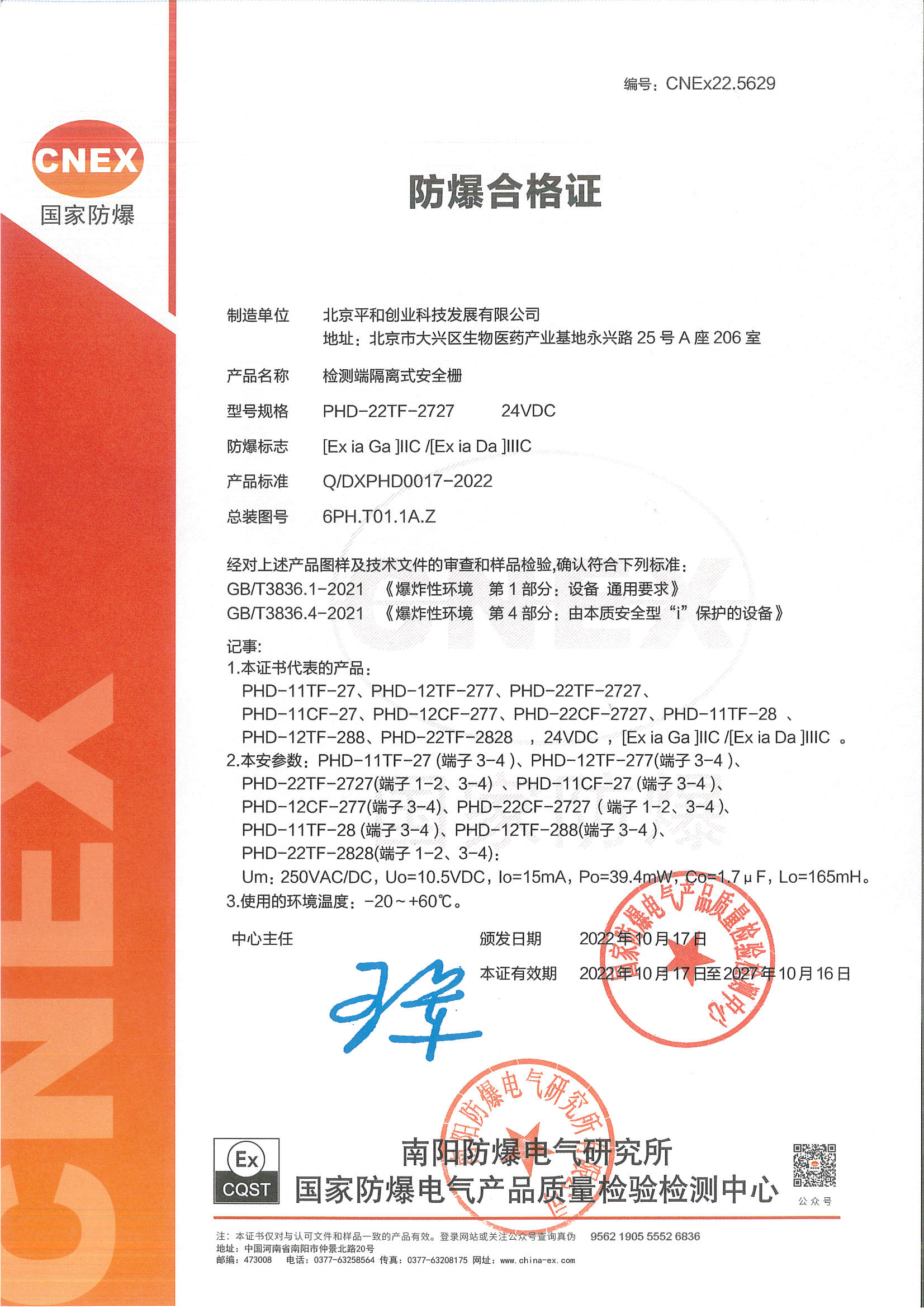| 認(rèn)證機(jī)構(gòu) | 國家防爆電氣產(chǎn)品質(zhì)量監(jiān)督檢驗(yàn)中心CQST認(rèn)證 |