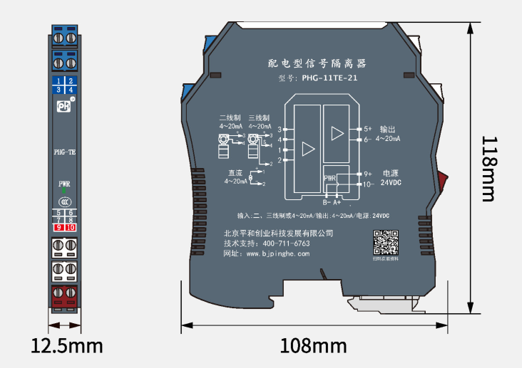 該產(chǎn)品需獨(dú)立供電, 電源、輸入、輸出三端隔離。