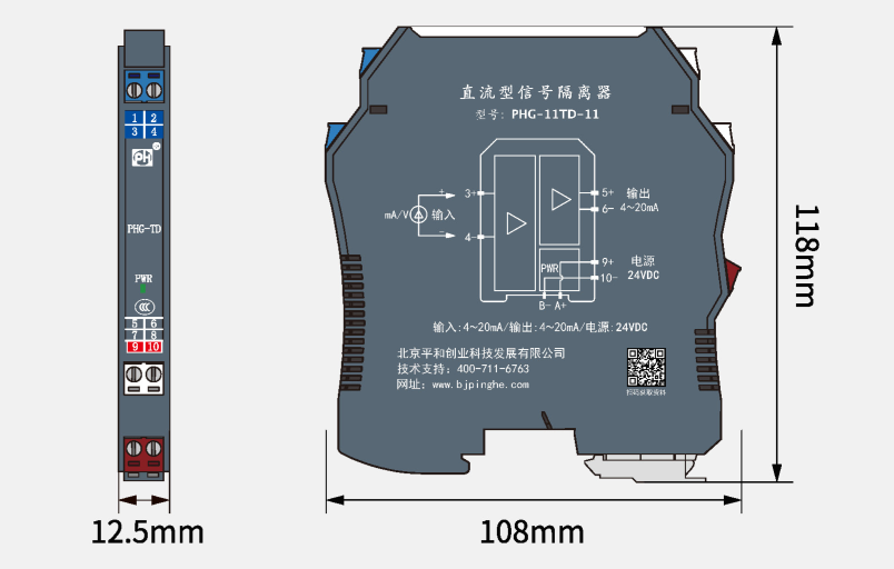 PHG-11TD系列模擬量輸入(出)信號(hào)隔離器,可實(shí)現(xiàn)將電流或電壓信號(hào)經(jīng)隔離、轉(zhuǎn)換為電流或電壓信號(hào)輸出,輸入、輸出參數(shù)可根據(jù)用戶需求定制。