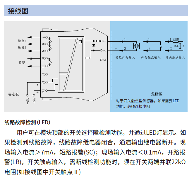 現(xiàn)場輸入電流>7mA,短路報(bào)警(SC),現(xiàn)場輸入電流<0.1mA,開路報(bào)警(LB)