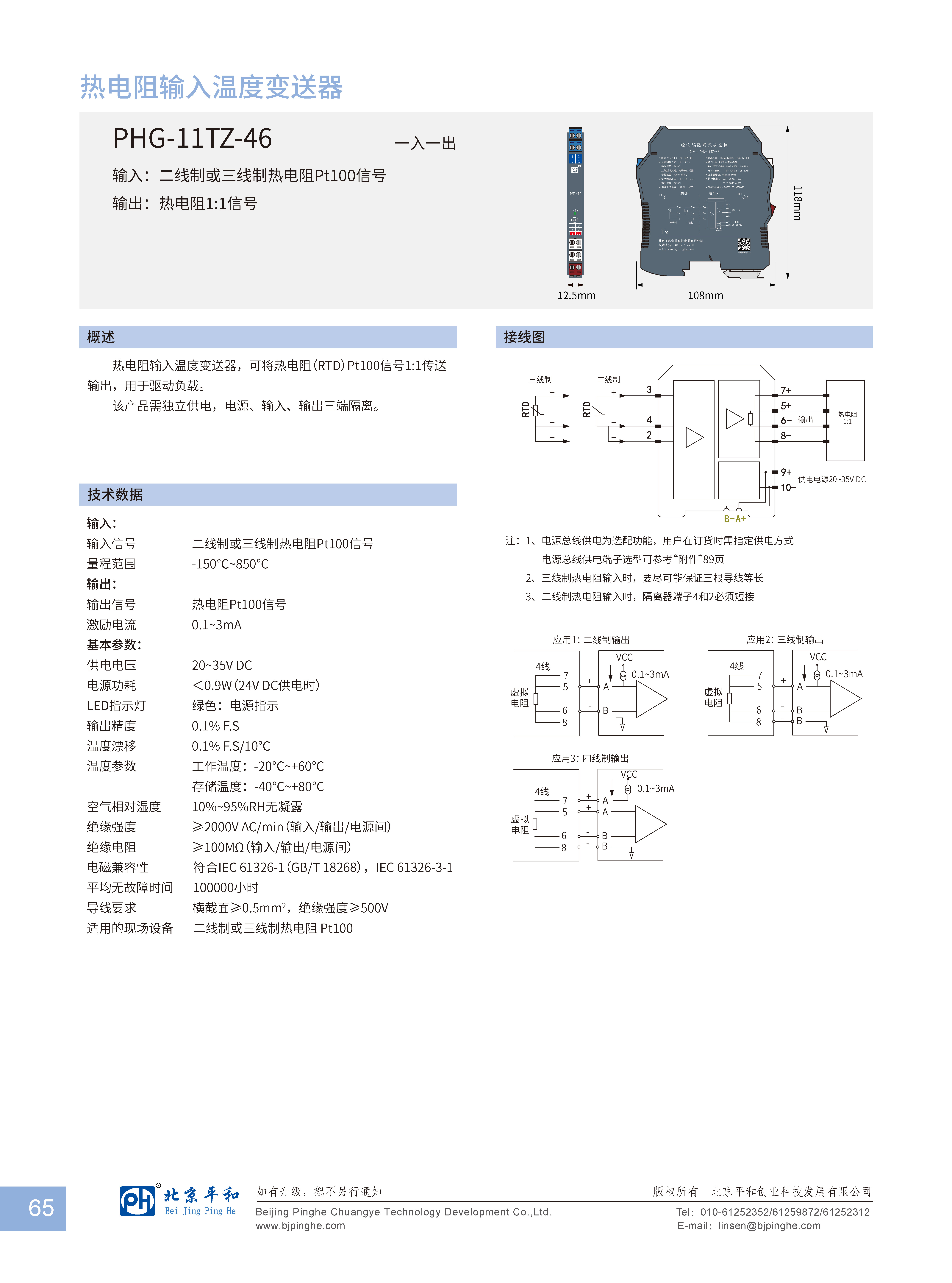 熱電阻輸入溫度變送器,可將熱電阻(RTD)Pt100信號1:1傳送送輸出,用于驅(qū)動(dòng)負(fù)載。