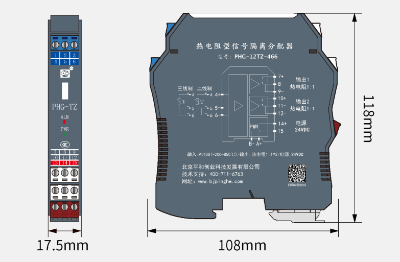 輸入:二線制或三線制熱電阻Pt100信號