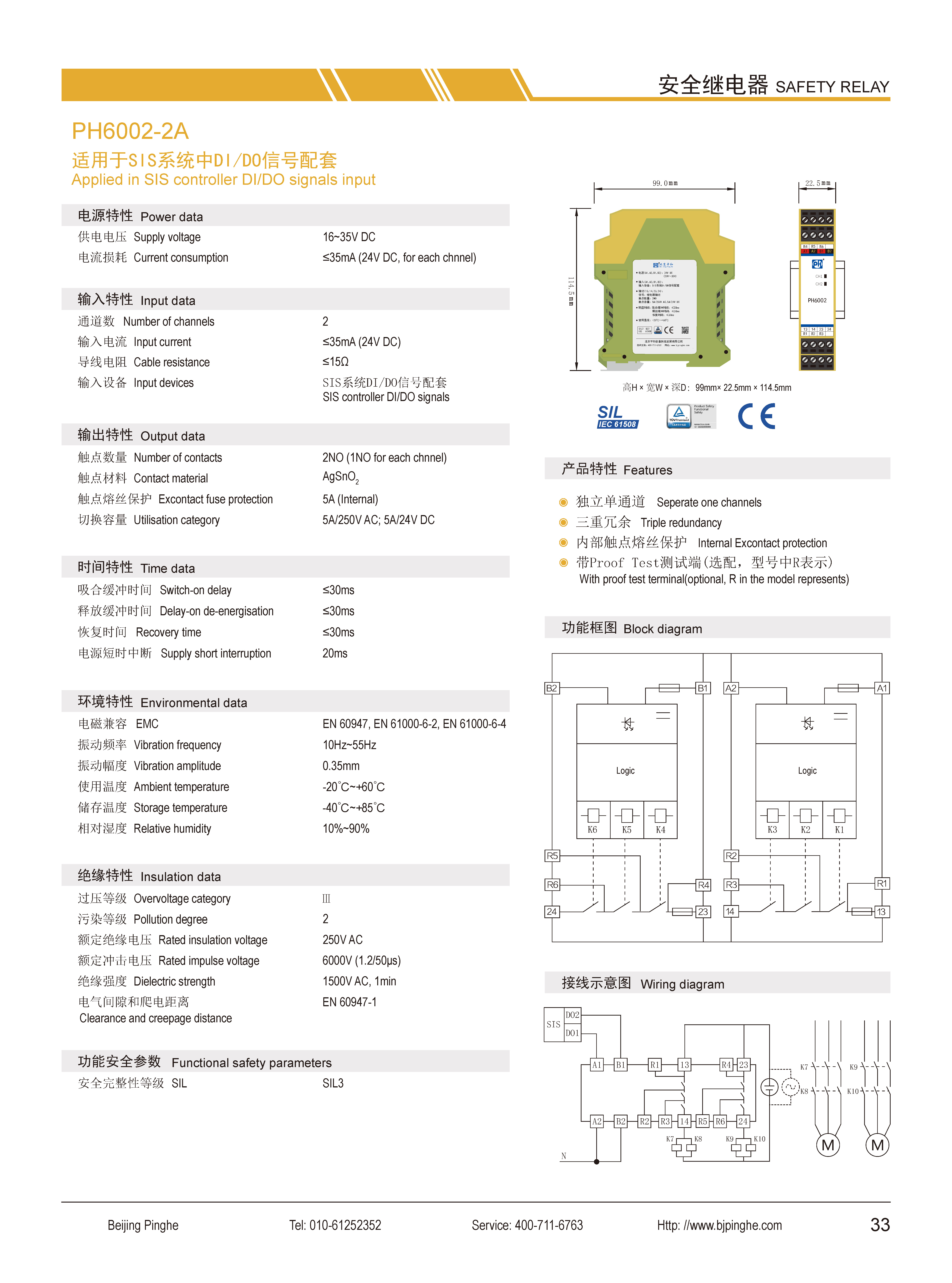 PH6002-2A是一款安全繼電器控制模塊,適用于安全開關、SIS系統(tǒng)中DO信號隔離轉(zhuǎn)換,具有2路常開(NO)觸點,預留端子方便實現(xiàn)快速的離線Proof Test測試,內(nèi)部電路采用Fail-safe技術,3重冗余技術和觸點熔接保護技術。