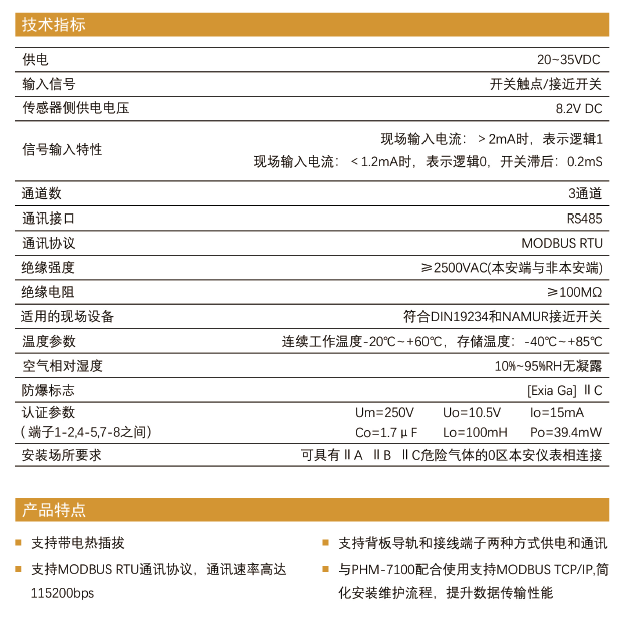 PHM-7230.Ex 三通道開關(guān)量輸入模塊
