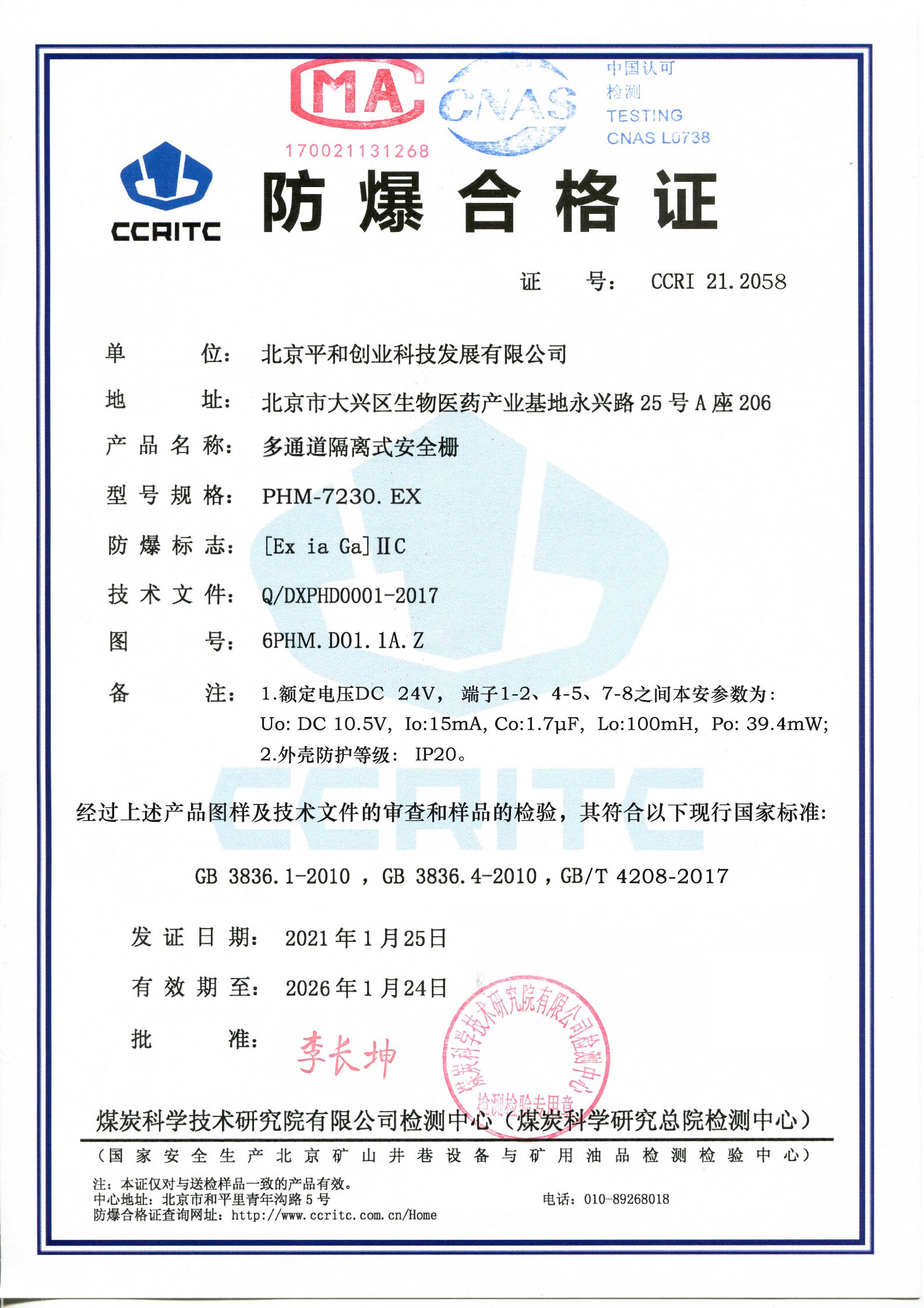 | 認(rèn)證參數(shù) | 端子1-2,4-5,7-8之間:Um=250V Uo=10.5V lo=15mA Co=1.7uF Lo=100mH Po=39.4mW | |