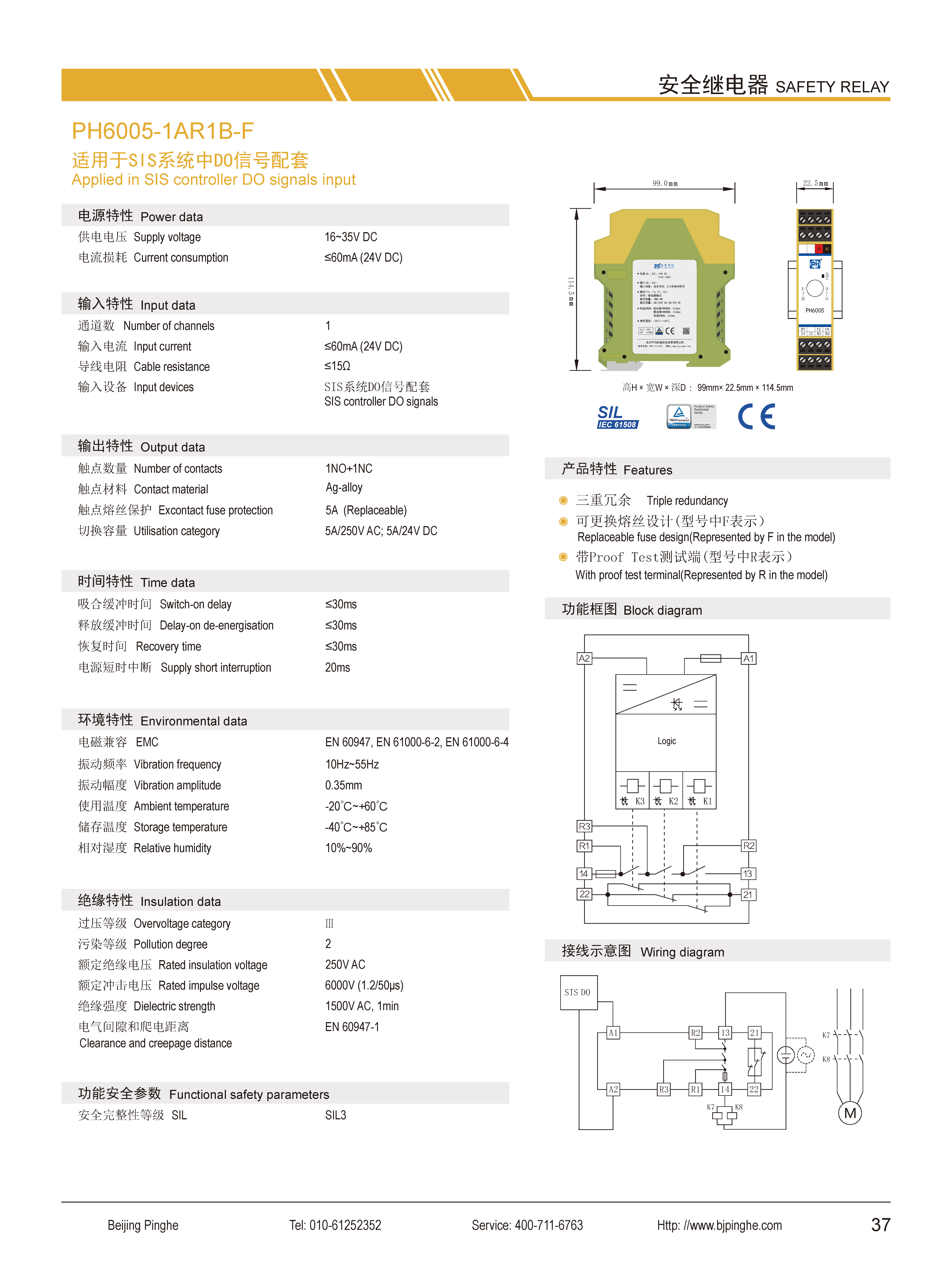PH6005-1AR1B-F是一款安全繼電器控制模塊,適用于安全開關(guān)、SIS系統(tǒng)中DO信號隔離轉(zhuǎn)換,具有1路常開(NO)觸點、1路常閉(NC)觸點,預(yù)留端子方便實現(xiàn)快速的離線Proof Test測試,面板上的熔絲倉預(yù)置5A熔絲保護(hù),用戶可快速地更換損壞的熔絲,內(nèi)部電路采用Fail-safe技術(shù),3重冗余技術(shù)和觸點熔接保護(hù)技術(shù)。