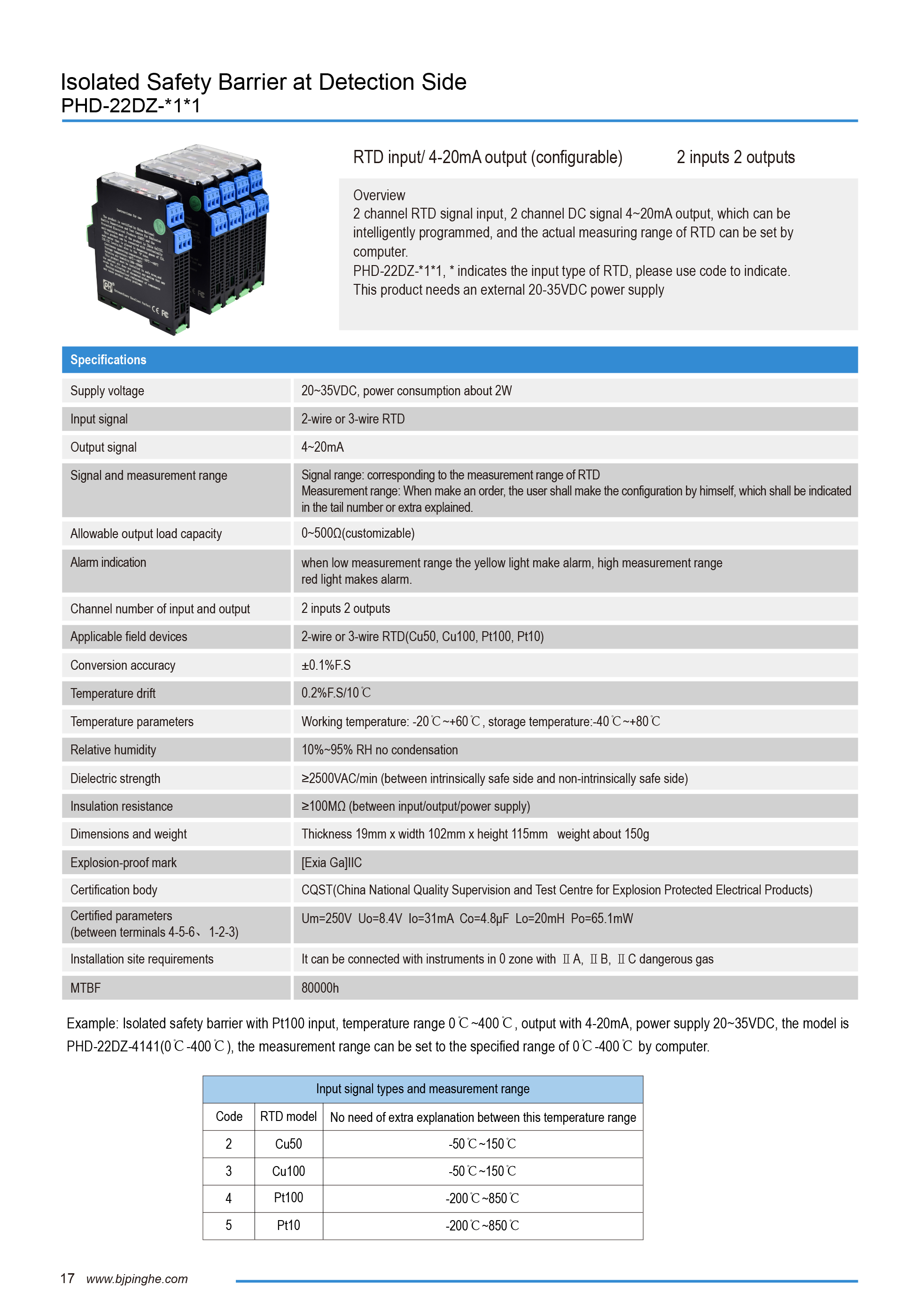 > Барьеры искрозащиты с гальванической изоляцией > D-серия: Искробезопасные барьеры с гальванической изоляцией > Температурный вход
