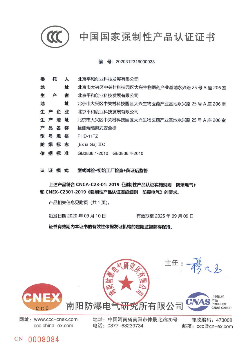 公告 | 北京平和依據(jù)國家市場監(jiān)管總局防爆電氣等產(chǎn)品由生產(chǎn)許可轉(zhuǎn)為強(qiáng)制性產(chǎn)品認(rèn)證管理實(shí)施要求完成認(rèn)證