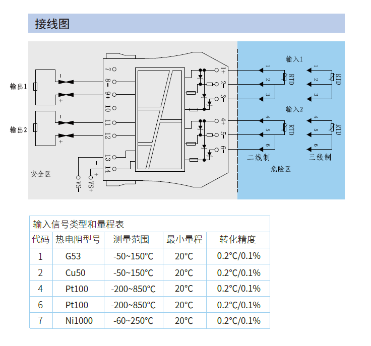 | 信號(hào)范圍及量程范圍 | 信號(hào)范圍:對(duì)應(yīng)熱電阻的測(cè)量范圍 |