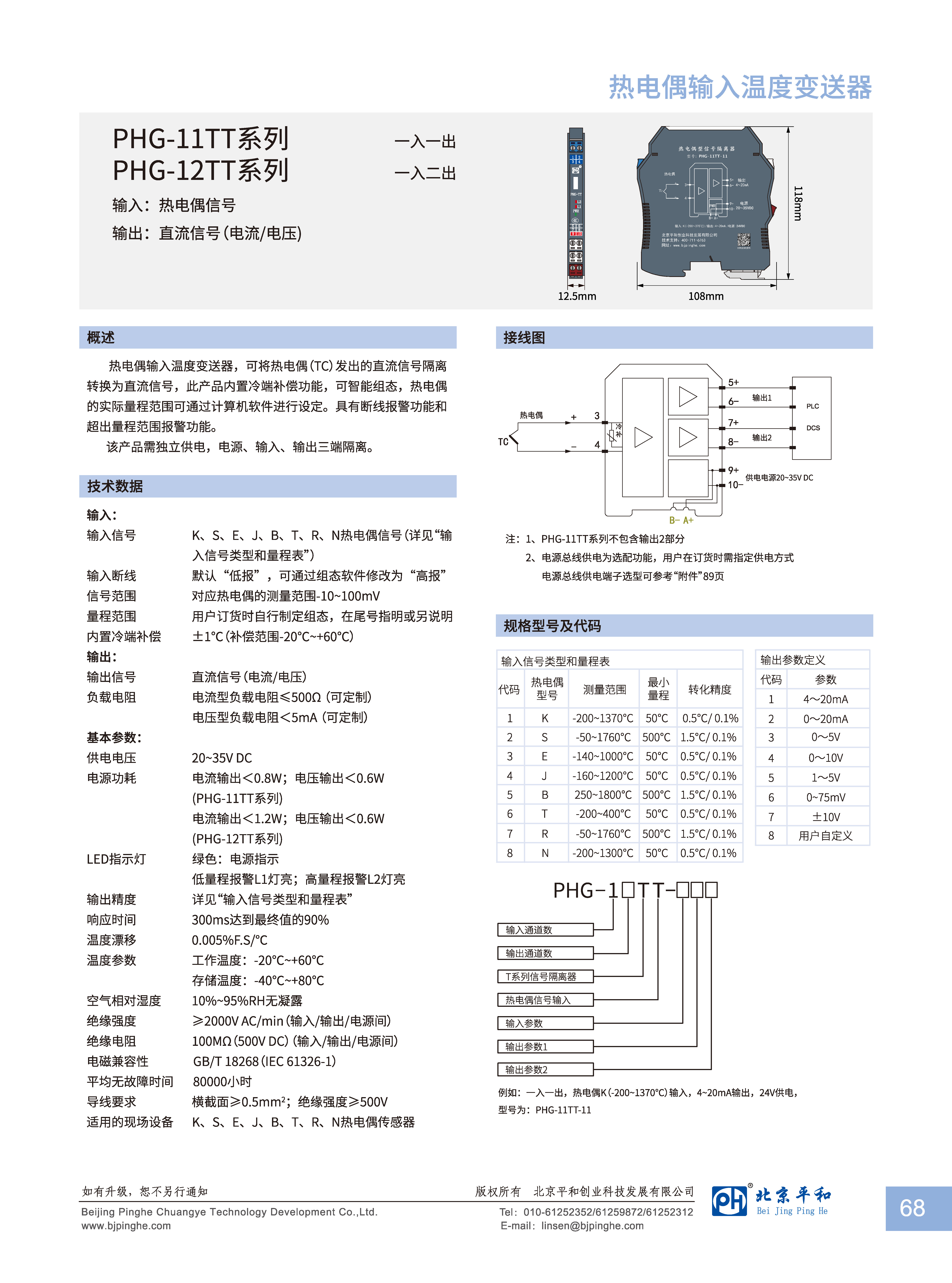 熱電偶輸入溫度變送器,可將熱電偶(TC)發(fā)出的直流信號隔離轉(zhuǎn)換為直流信號,此產(chǎn)品內(nèi)置冷端補償功能,可智能組態(tài),熱電偶的實際量程范圍可通過計算機軟件進行設(shè)定。具有斷線報警功能和超出量程范圍報警功能。該產(chǎn)品需獨立供電,電源、輸入、輸出三端隔離。